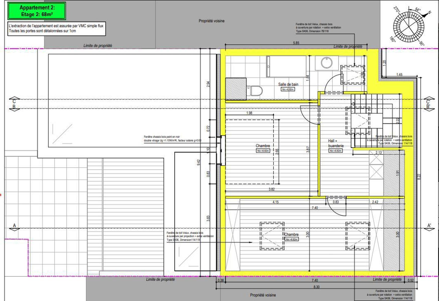 | Exposition de la façade avant | nord-est |