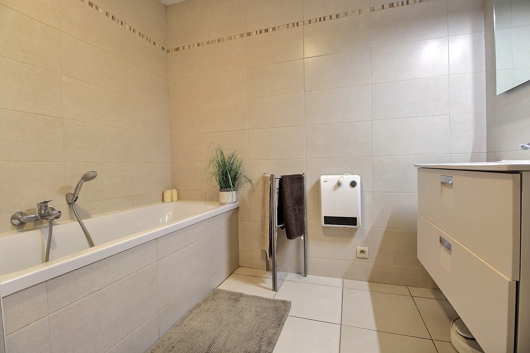 ***VENDU***Dans les résidences Fabelta, en plein centre de Tubize, à 2 pas de tous commerces, transports, école, superbe appartement de 74m² construit en 2015 et situé au 4eme et dernier étage. L'appartement se compose d'un spacieux hall d'entrée, d'un beau living carrelé avec cuisine américaine full équipée, une terrasse avec une très belle vue, une buanderie/ chaufferie, un w.c avec lave-mains, deux chambres, une salle de bains avec baignoire et douche. L'appartement possède une cave et un emplacement de parking intérieur. Confort: Ascenseur, porte blindée, chauff. accu. électrique et panneaux solaires, dble vitrage, tout carrelé, conformité électrique, ventilation dble flux. PEB: B (110 kwh/m².an), conso.totale: 8086 Kwh/an. CO2:26,63kg. N° unique: 20160408525882. Prix: 244.000€. Emplacement de parking intérieur: 16.000€. Charges: +/-91 €/mois (appart.+ parking). Contact: Sofoximmo: 0471/85.36.79