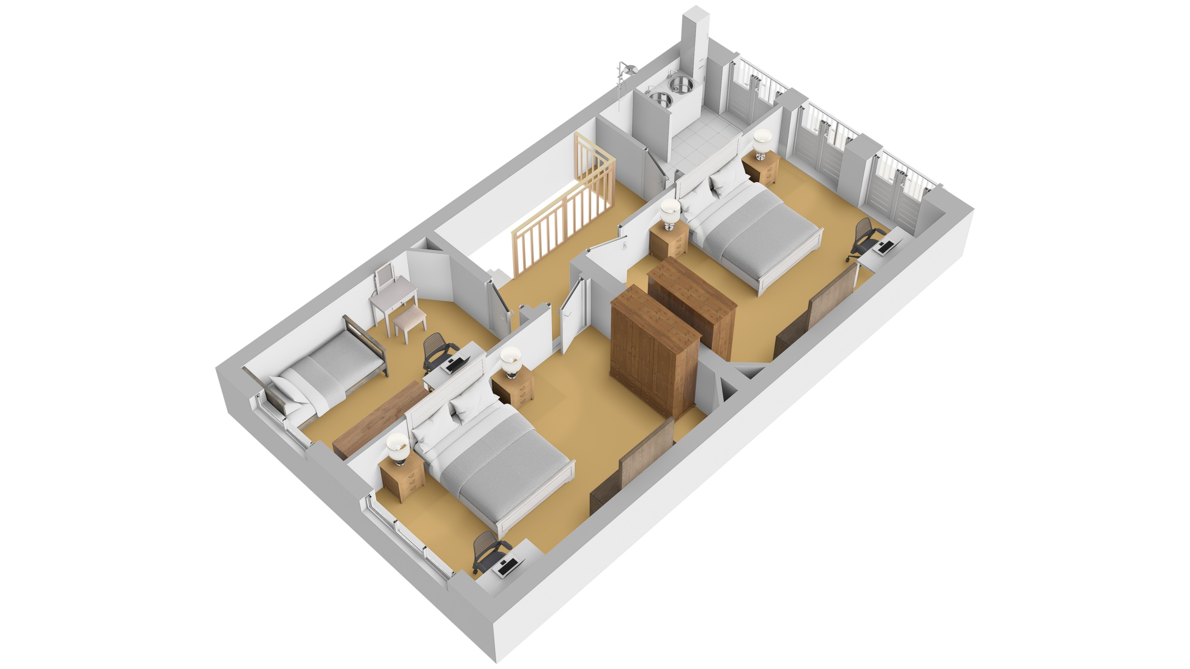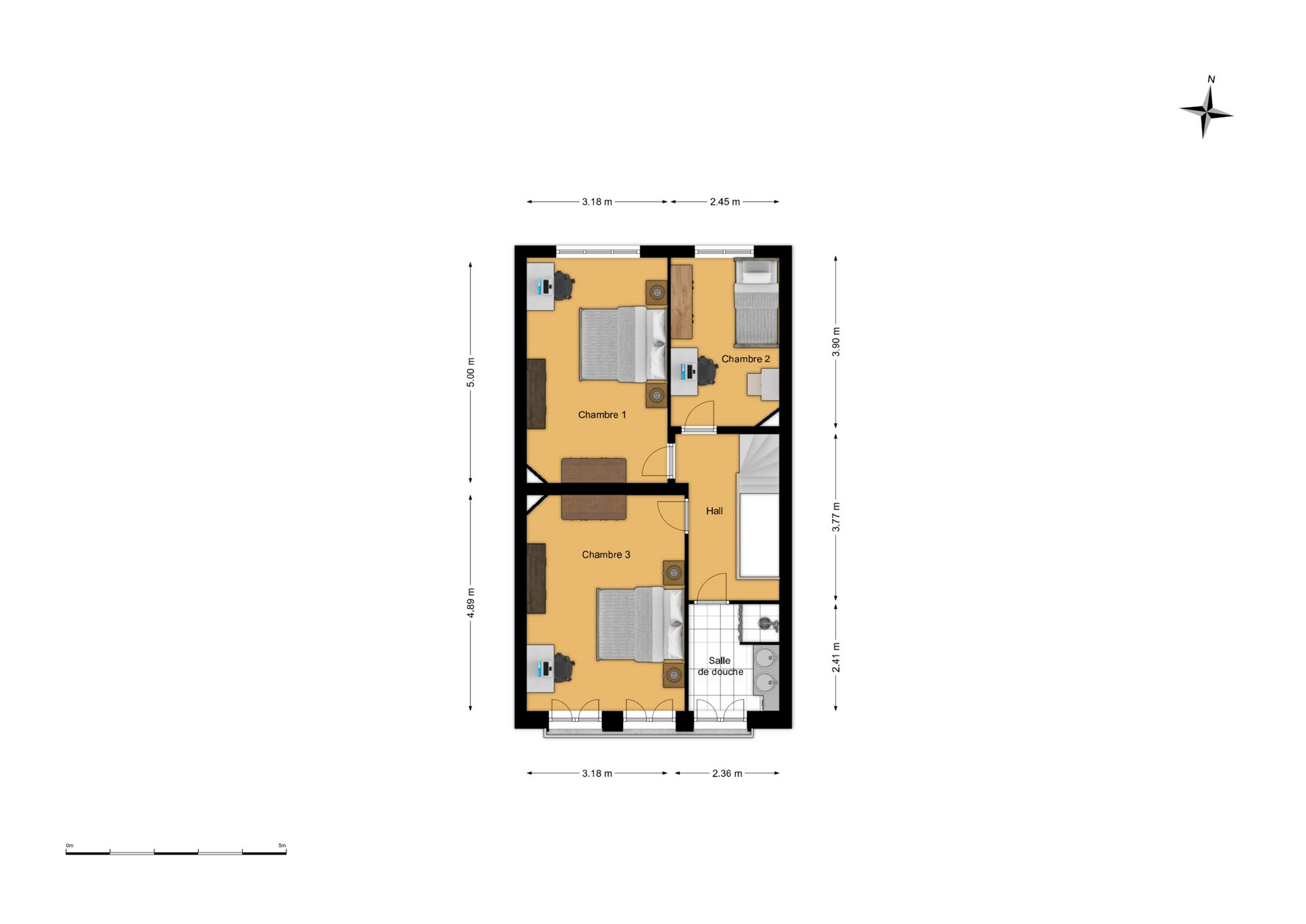 À l’étage, vous trouverez 3 chambres et une salle de douche.