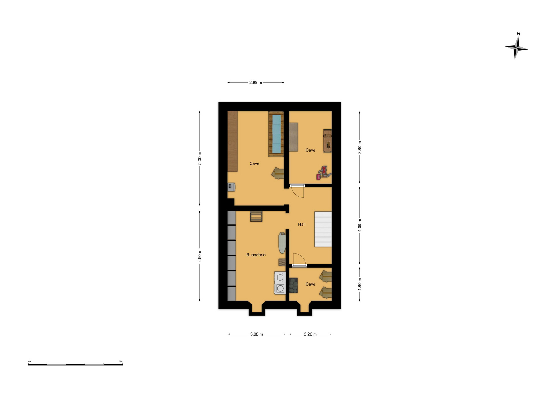 Le sous-sol comprend plusieurs caves ainsi qu’une buanderie, offrant de nombreux espaces de rangement.