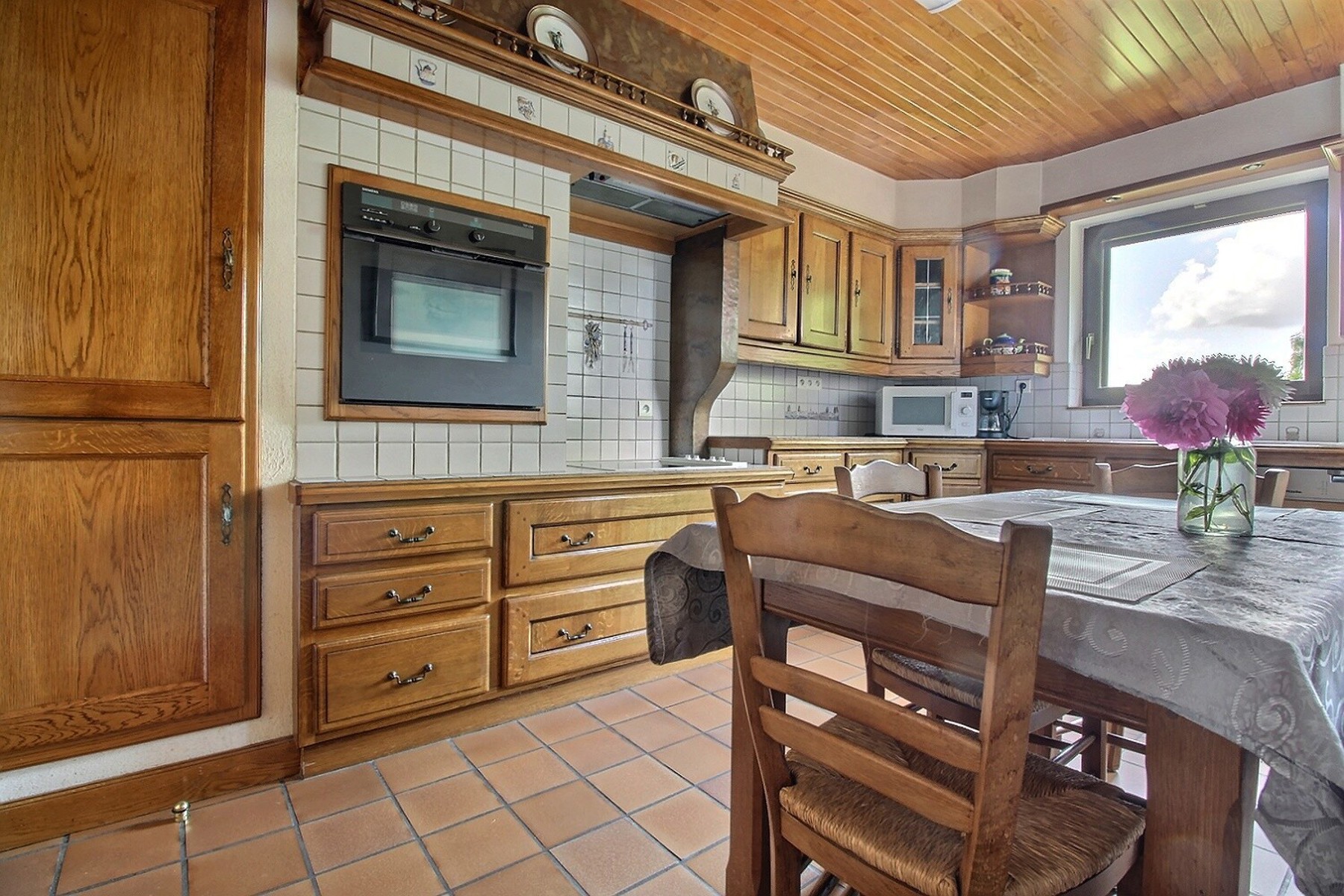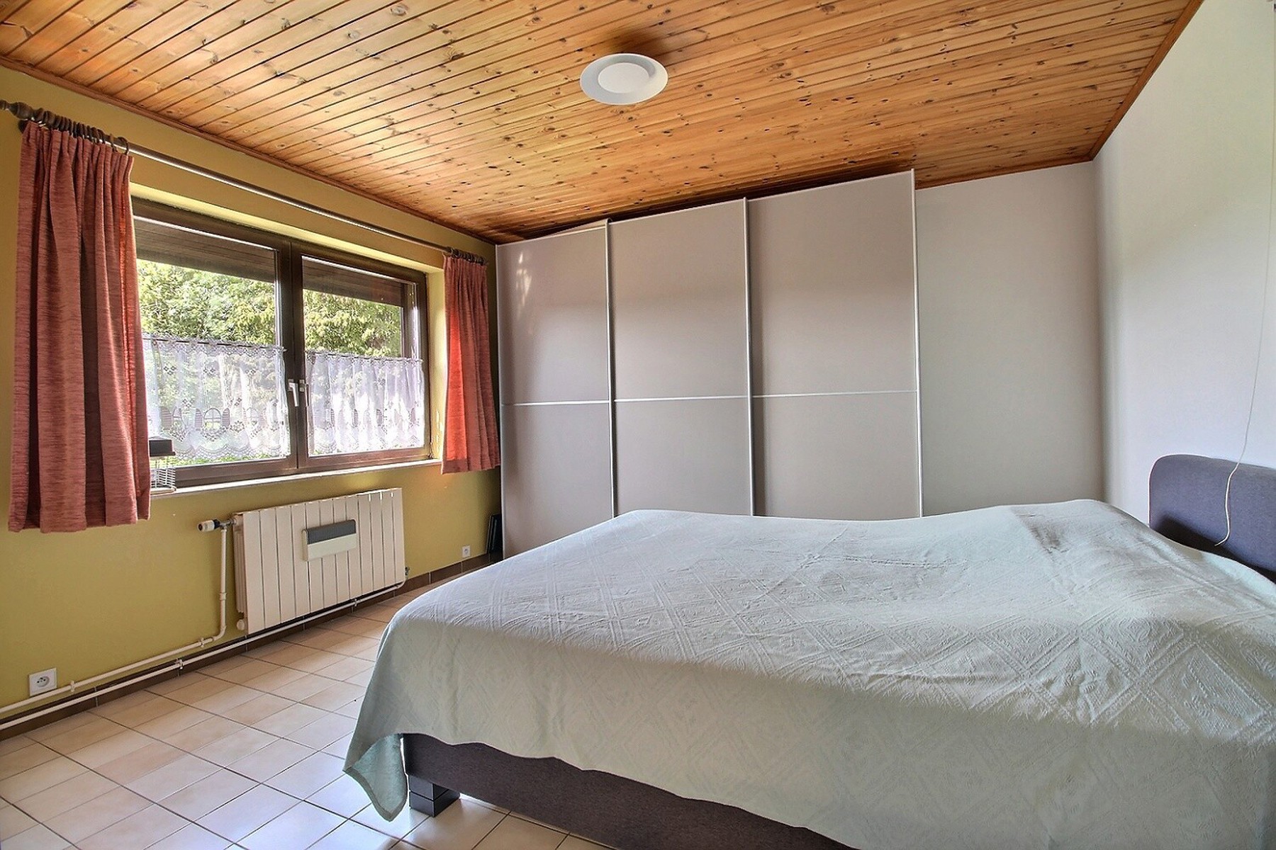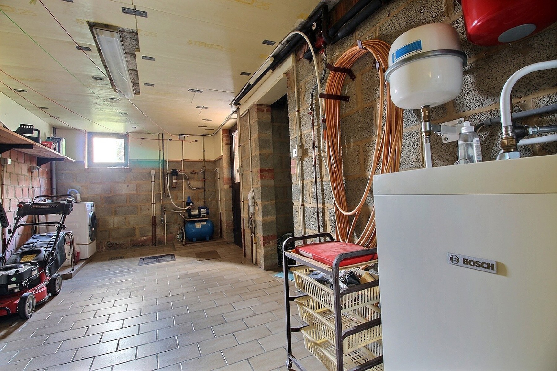 ***VENDU***Superbe maison 3 façades avec magnifique terrain de 9a37ca à visiter sans tarder !!! En sous sols: spacieuses caves avec espace buanderie, chaufferie, cave à vins, cave à provisions, garage avec établi, abris pour rangement bois. Magnifique jardin bien entretenu avec Noyer, allée latérale offrant 3 emplacements de parking. Au rez-de-chaussée: hall d'entrée avec placard, w.c avec lave-mains, cuisine de 12,40m² sur mesure et full équipée, spacieux séjour carrelé de 32m² avec poêle à bois donnant sur nouvelle terrasse de 13m². Au 1er étage: hall de nuit, w.c, salle de bains avec baignoire et meuble lavabo, 3 chambres (16m², 16m² et 12,5m²). Grenier: Grenier de rangement accessible par trappe. Confort: Chauff.central de 2018, dble vitrage en Meranti, nouvelle toiture et isolation de 2018, nouvelle terrasse avec tente solaire électrique, citerne d'eau de pluie de 6000L avec groupe hydrophore, volets électriques à l'arrière, système d'alarme. PEB: C 183Kwh/m².an, Conso.totale: 25312 kWh/an; Co²: 34kg.N°unique: 20230827009661. R.C: 1100€. Prix: 345.000€. Contact: Sofoximmo: 0471/85.36.79