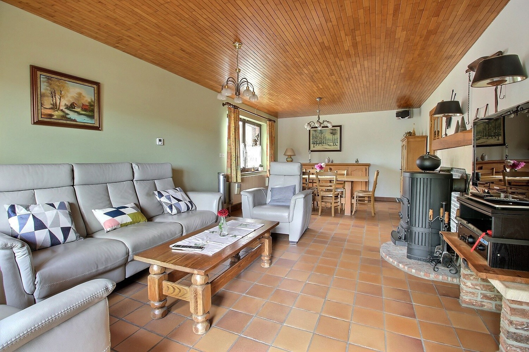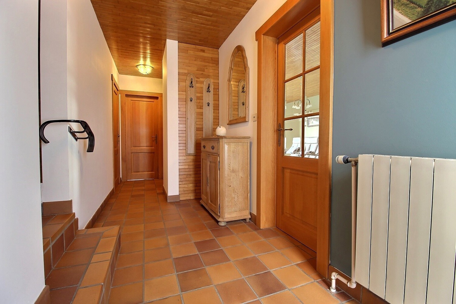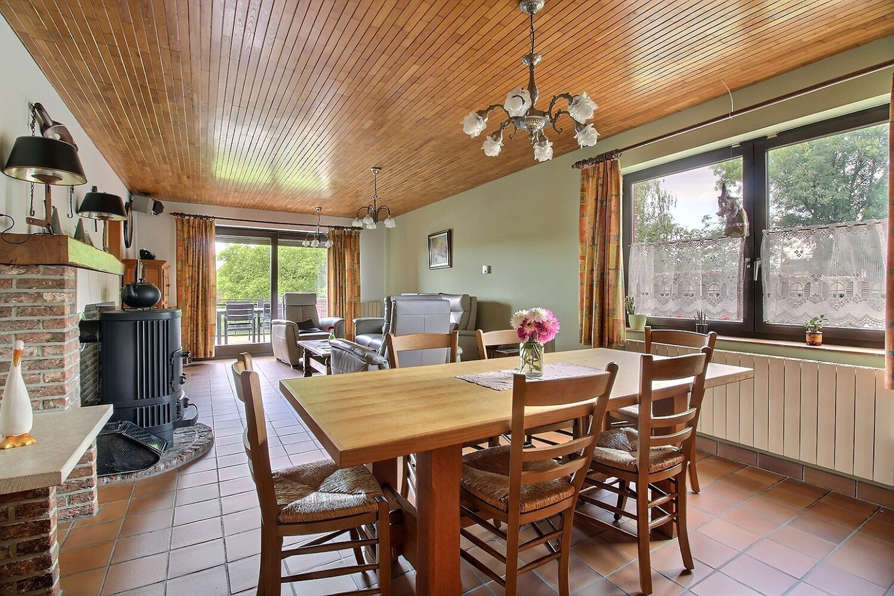 ***VENDU***Superbe maison 3 façades avec magnifique terrain de 9a37ca à visiter sans tarder !!! En sous sols: spacieuses caves avec espace buanderie, chaufferie, cave à vins, cave à provisions, garage avec établi, abris pour rangement bois. Magnifique jardin bien entretenu avec Noyer, allée latérale offrant 3 emplacements de parking. Au rez-de-chaussée: hall d'entrée avec placard, w.c avec lave-mains, cuisine de 12,40m² sur mesure et full équipée, spacieux séjour carrelé de 32m² avec poêle à bois donnant sur nouvelle terrasse de 13m². Au 1er étage: hall de nuit, w.c, salle de bains avec baignoire et meuble lavabo, 3 chambres (16m², 16m² et 12,5m²). Grenier: Grenier de rangement accessible par trappe. Confort: Chauff.central de 2018, dble vitrage en Meranti, nouvelle toiture et isolation de 2018, nouvelle terrasse avec tente solaire électrique, citerne d'eau de pluie de 6000L avec groupe hydrophore, volets électriques à l'arrière, système d'alarme. PEB: C 183Kwh/m².an, Conso.totale: 25312 kWh/an; Co²: 34kg.N°unique: 20230827009661. R.C: 1100€. Prix: 345.000€. Contact: Sofoximmo: 0471/85.36.79