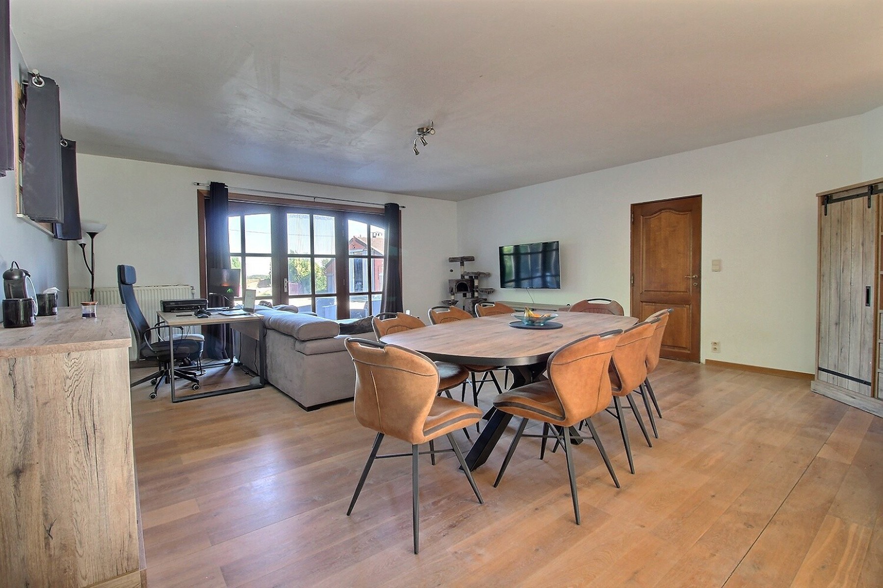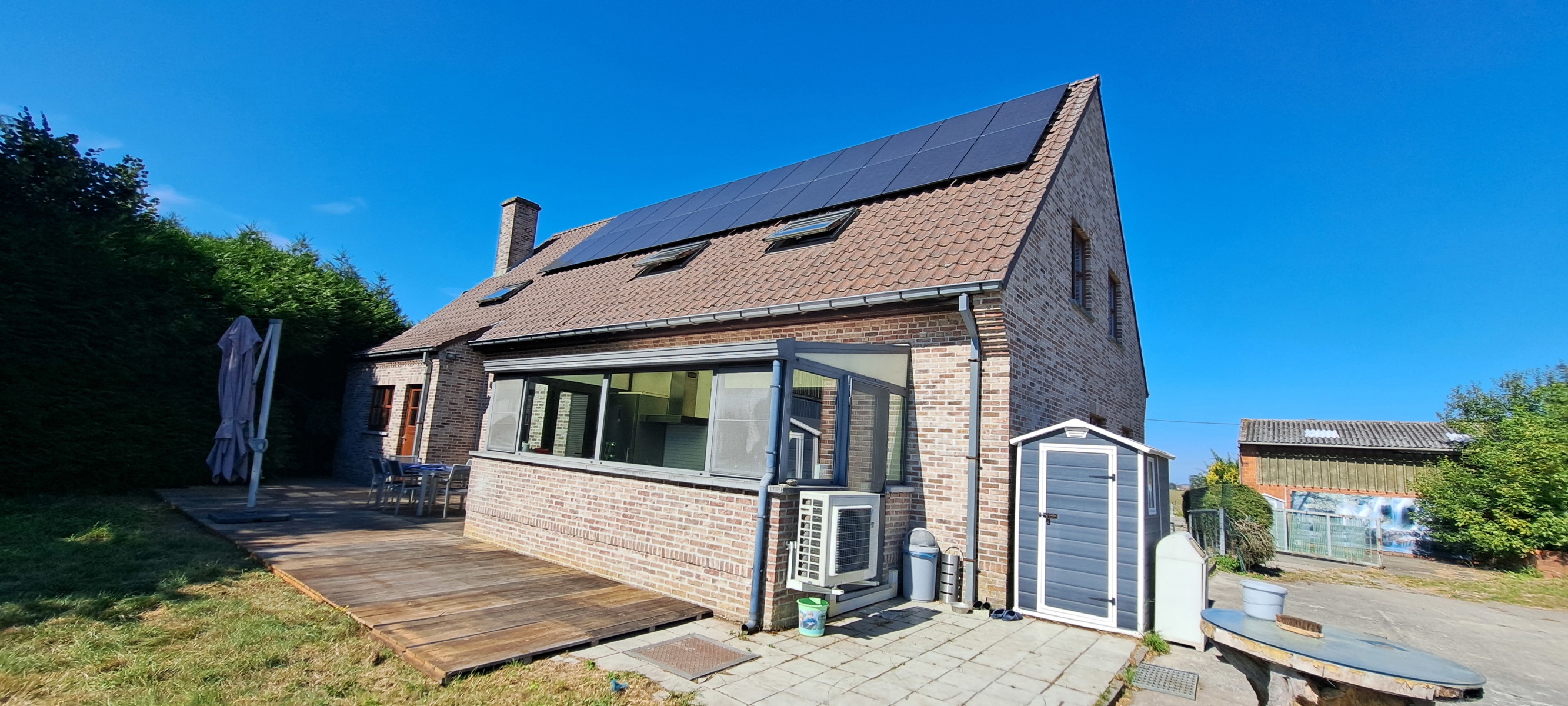 Située à Steenkerque, dans un cadre rural paisible avec vue imprenable, propriété équestre de près de 2 hectares avec villa de 1999, 5 chambres de 282 m²(ref.PEB), espace de vie lumineux, 2 cuisines full équipées, 5 grandes chambres, 2 salles de bains complètes, grenier, jardin, terrasse, grands espaces de parkings. Infrastructures équestres/agricole : hangar avec 12 box pour chevaux (455m²), rangement paille, second hangar de 248,5m², piste équestre intérieure couverte de 625 m², sillos, pâtures attenantes prêtes à accueillir vos chevaux. Autonomie énergétique avec 46 panneaux photovoltaïques + c.c au mazout. Idéal famille, passionnés de chevaux ou projet multigénérationnel. Environnement calme, sans vis-à-vis, proximité de Enghien (6km), Rebecq (7km), Braine-le-Comte (8km), Hoves (3,5km). PEB B (147kwh/m².an), conso.totale: 41.407 Kwh/an. CO2: 36kg. N° unique: 20250818027282. R.C: 2.124€. Prix: F.O à partir de 775 000 €. Regardez aussi la visite virtuelle sur Sofoximmo.be. RDV et renseignements: Sofoximmo 0471/85.36.79.